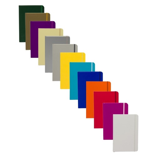 Descrição: Caderneta de papel couchê, contém aproximadamente 72 folhas amarelas com pauta e 16 folhas sem pauta, marcador de página em cetim, elástico para lacre e compartimento em papel para documentos ou anotações.