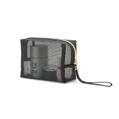 Descrição: Nécessaire confeccionada em malha de nylon. Seu visual em malha, permite uma fácil visualização dos itens em seu interior. Os detalhes em dourado no zíper, adicionam um toque de elegância e sofisticação.