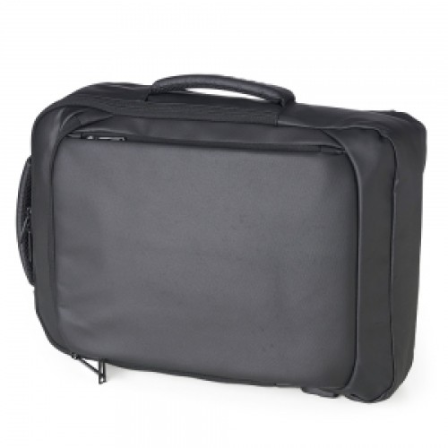 Descrição: Mochila em couro sintético 22 litros resistente à água com cinco compartimentos, sendo o principal com bolso para notebook 15,6. Com divisórias internas para acessórios, a mochila possui suporte externo usb, alça para encaixe em malas de viagem e duas alças de mãos, sendo uma delas lateral para o transporte da mochila no modo pasta.